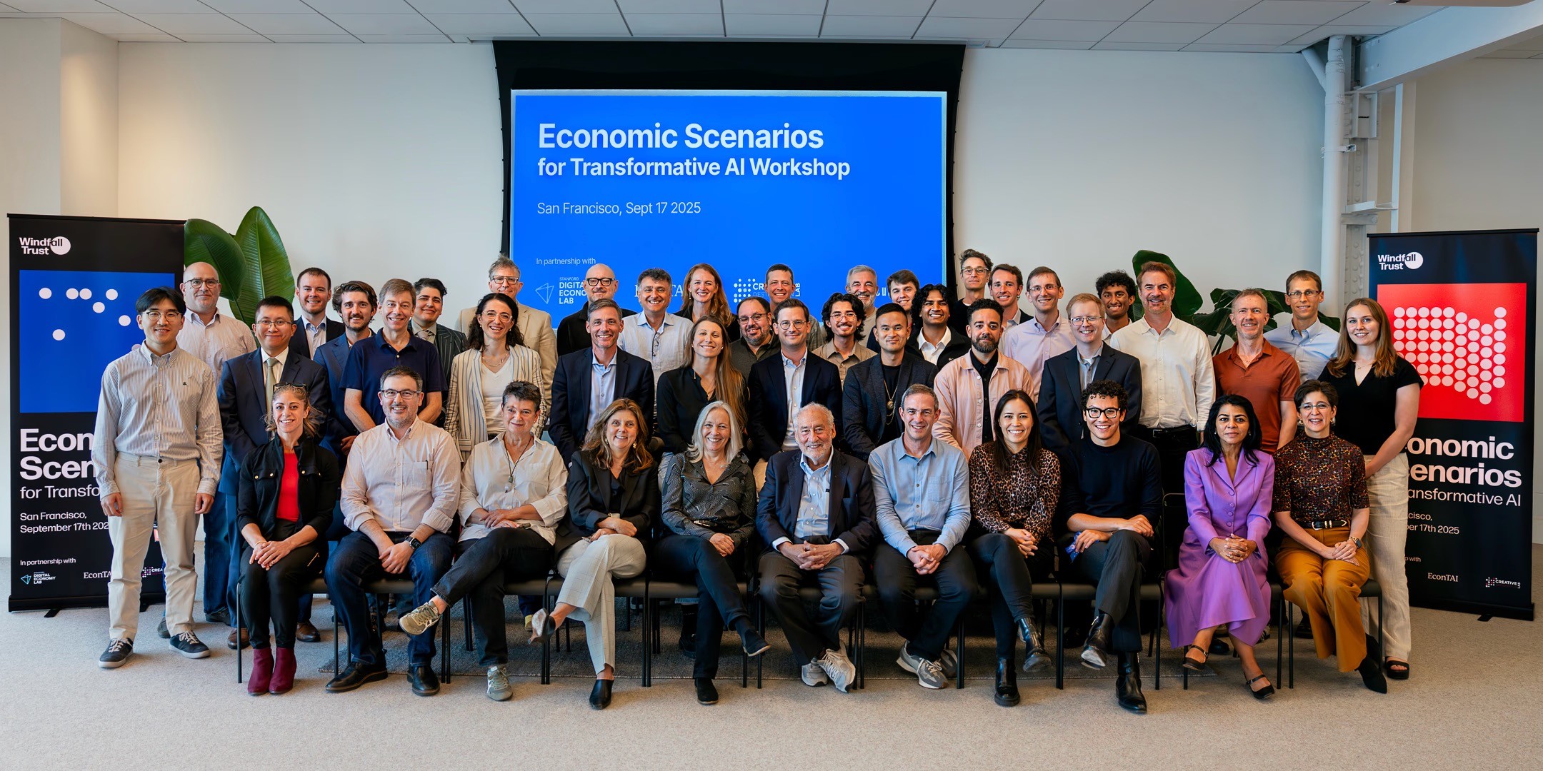Co-convened with Anton Korinek, Erik Brynjolfsson, and Ajay Agrawal, this workshop brought together 40+ leading economists and AI lab representatives to stress-test the macroeconomic implications of transformative AI. Participants worked through four high-growth scenarios, exploring how different speeds and shapes of AI adoption could reshape labor markets, productivity, and the broader economy.